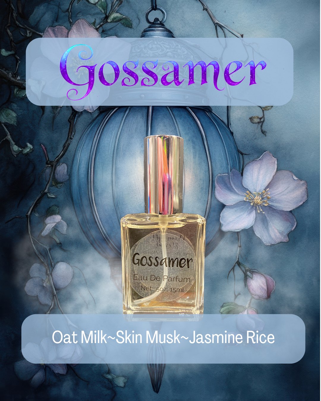 Gossamer is a subtle yet quietly complex blend that is hard to describe yet impossible to stop sniffing. The fragrance opens with an ethereal yet comforting blend of warm oat milk, rich cream, and the gentle aroma of jasmine rice. There's a hint of coconut milk and creamy jasmine in the heart, and just a whisper of vanilla. This is a soft, mysterious skin scent that will stick close and quietly beguile you. It's gourmand but also floral, and defies simple classification.